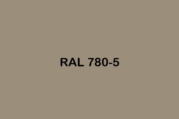Descripción: En la imagen se presenta el color RAL 780-5, perteneciente a la categoría 780 - 799 dentro del sistema de color RAL Effect. Este tono se caracteriza por ser un gris marrón sutil, evocando un aire natural y cálido que puede adaptarse a diferentes estilos y ambientes.